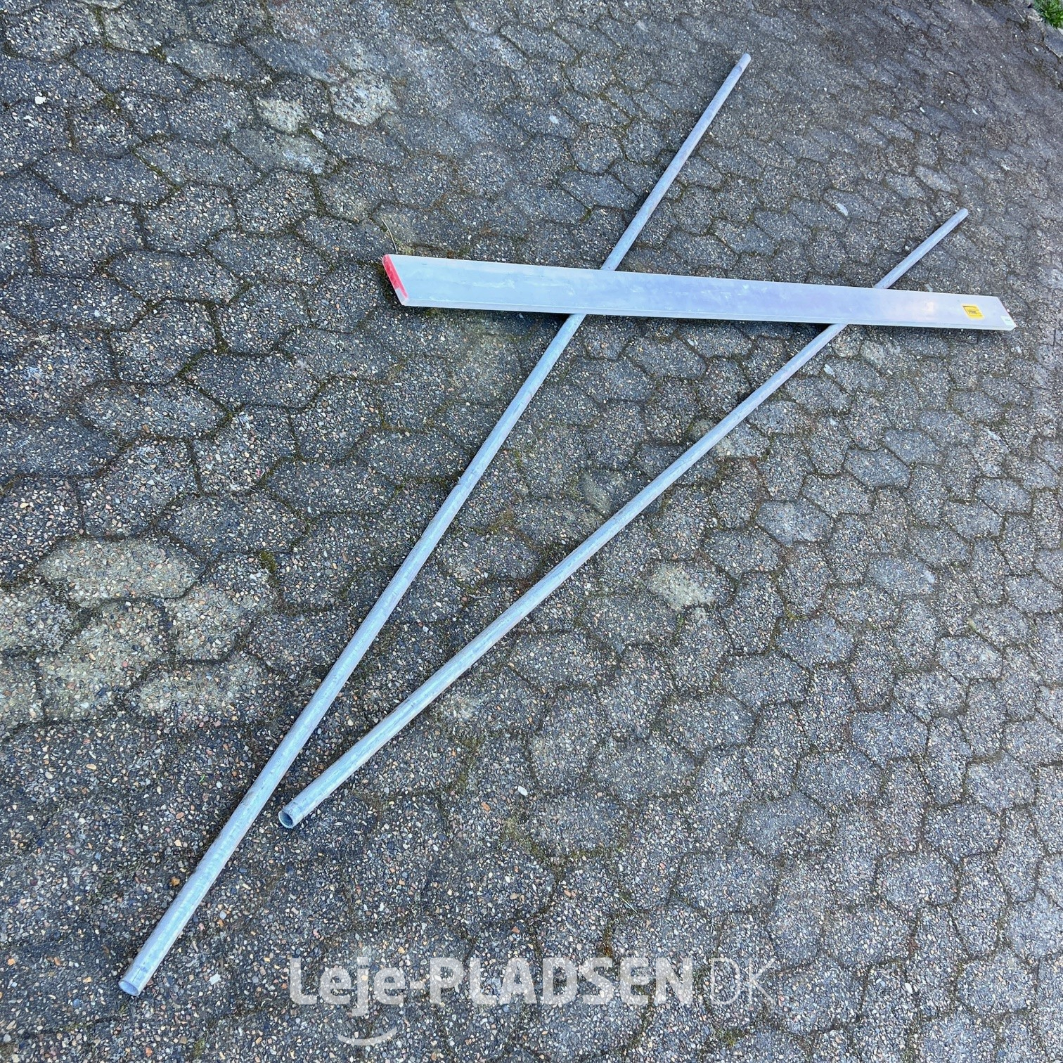 Afrettersæt bestående af 2 stk. 3 meter lange galv. jernrør samt afretteskinne, 2 meter lang.