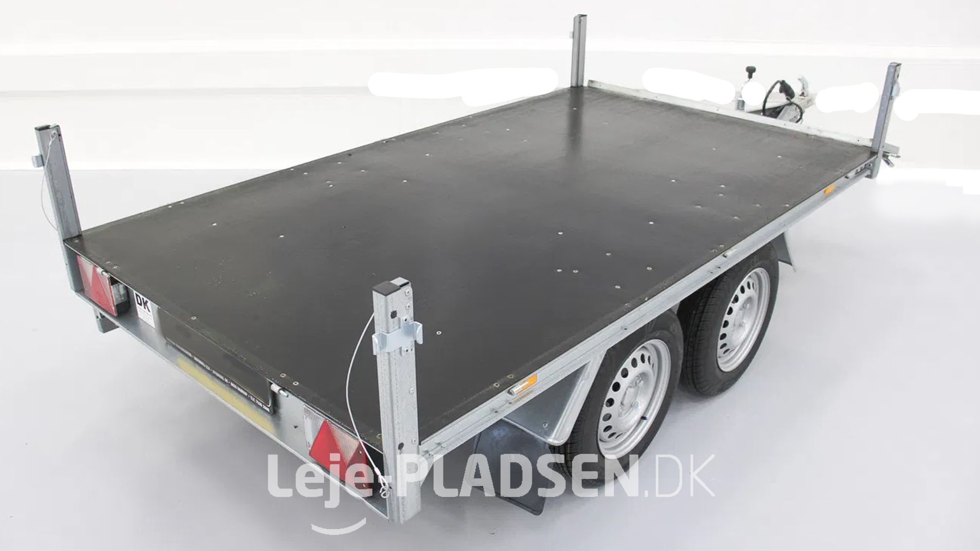 Her har du traileren med rigtig god plads på ladet! Leveres med høje sider (70 cm), presenning med topbøjler samt net.
