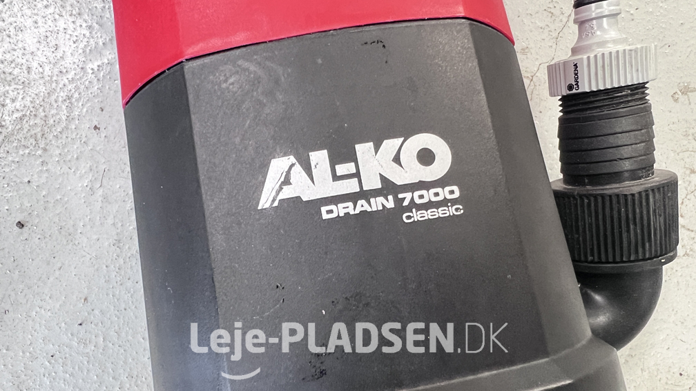AL-KOs Dykpumpe DRAIN 7000 Classic – pumper 7.000 liter pr. time. Automatisk svømmeafbryder. Velegnet til lænsning af snavset vand med partikler op til 30 mm.