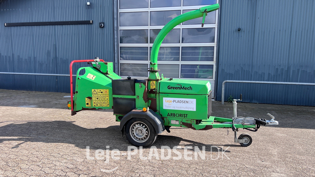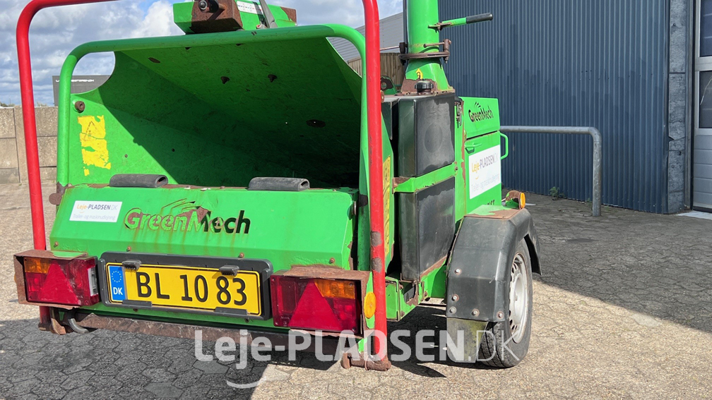 Proff GreenMech flishugger trailermonteret – lige til at køre i skoven hvor du ønsker at flise træ og grene. Fliser træ optil 150 mm Ø.