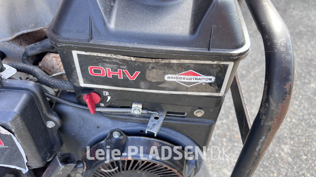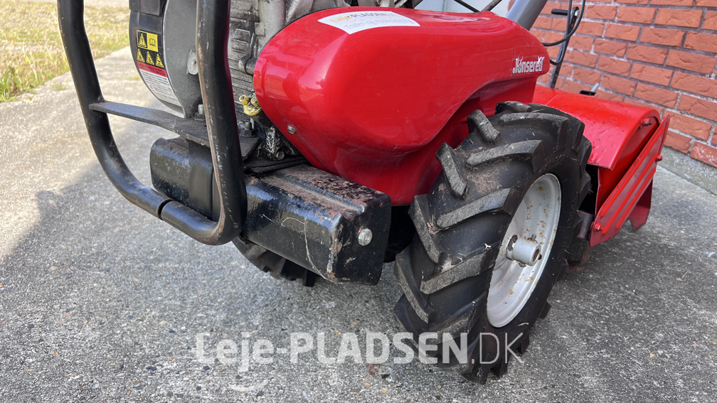 Bagmonteret havefræser fra Jonsered/HUSQVARNA på 5,5HK er velbygget og er derfor behagelig at arbejde med – dens måde at arbejde på – at knivene er bagudrettet gør det til en leg at arbejde med den!